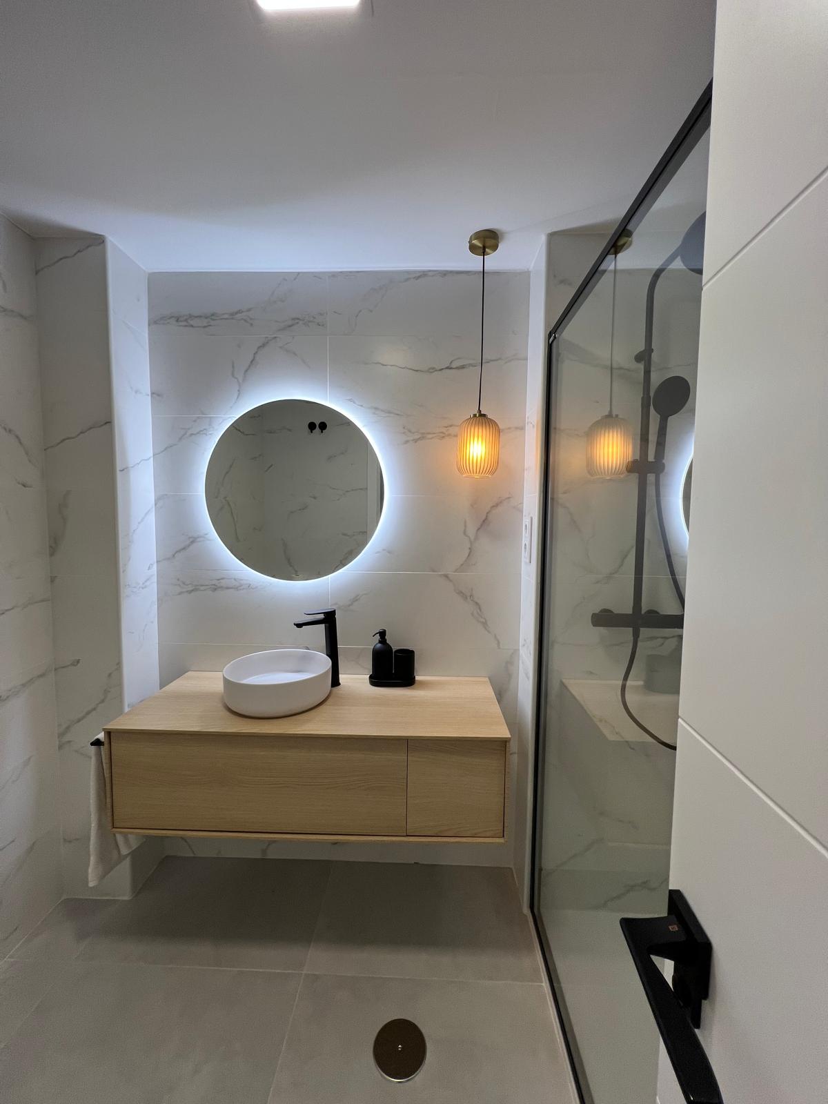 Tras la reforma, la vivienda experimenta un cambio radical: los espacios se abren, se amplían y se conectan visualmente para ganar amplitud y luminosidad. La cocina pasa a integrarse con el salón-comedor, creando un ambiente común más amplio y funcional. Los baños y dormitorios se renovaron por completo con nuevos acabados, y la paleta clara elegida para la vivienda unifica las estancias y potencia la luz natural. El resultado revela cómo el diseño y la planificación pueden redefinir un hogar en todos los sentidos, creando una vivienda cómoda, actual y armoniosa.