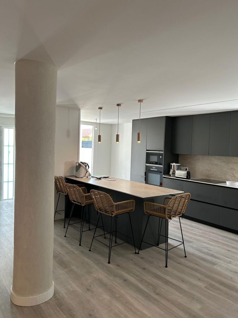 Durante el proceso de reforma se estudiaron todas las posibilidades del espacio para optimizar cada rincón de la vivienda. Se ampliaron zonas clave como el salón y la cocina, se mejoró la circulación interior y se renovaron instalaciones para garantizar eficiencia y comodidad. La coordinación entre equipos permitió ejecutar cada fase con precisión, manteniendo siempre la coherencia del diseño final.