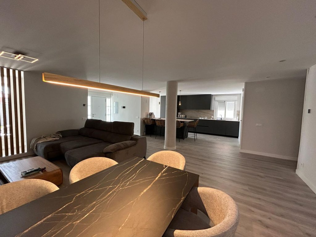 Tras la reforma, la vivienda se abre por completo: los espacios fluyen de manera natural, la luz entra de forma más uniforme y la nueva paleta de materiales aporta calidez y modernidad. La cocina se integra visualmente con las zonas sociales, los dormitorios ganan orden y claridad, y los baños adquieren un diseño más práctico y contemporáneo. El contraste entre el estado inicial y el resultado final demuestra cómo una reforma integral puede transformar no solo el aspecto de una vivienda, sino también su forma de vivirse.